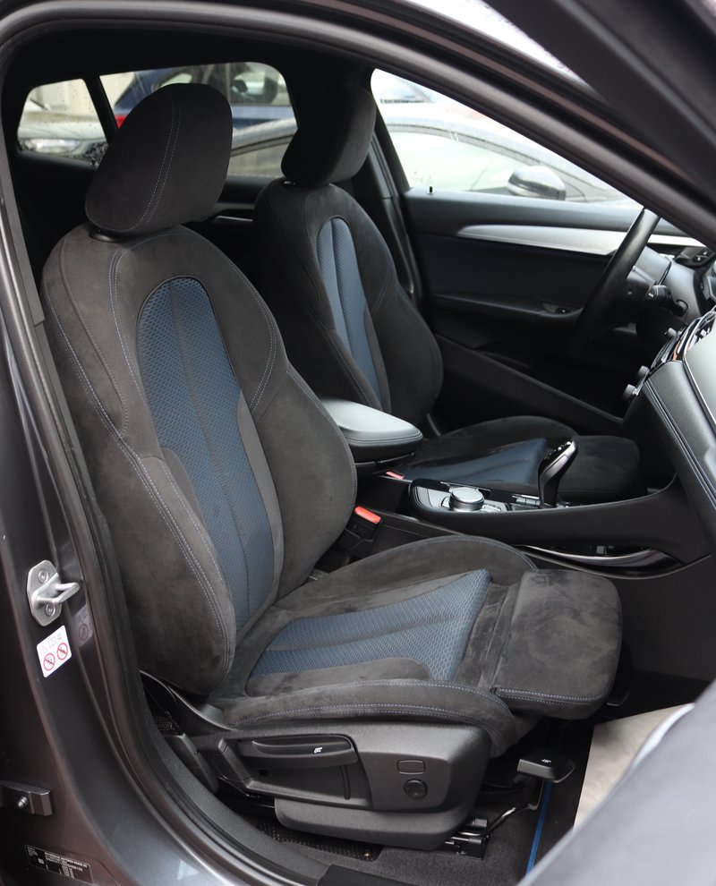 - Alcantara M-Sportsitze mit Sitzverlängerung und Blaue Akzente (in Schwarz)